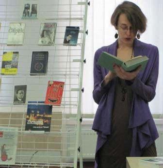 «Ілюстрована книга-поліморф». Майстер-клас відомих датських письмеників та ілюстраторів Дорте Карребек і Оскара К. Дорте Карребек позує для учасників майстер-класу, який полягав в тому, щоб робити швидкі начерки її фігури.